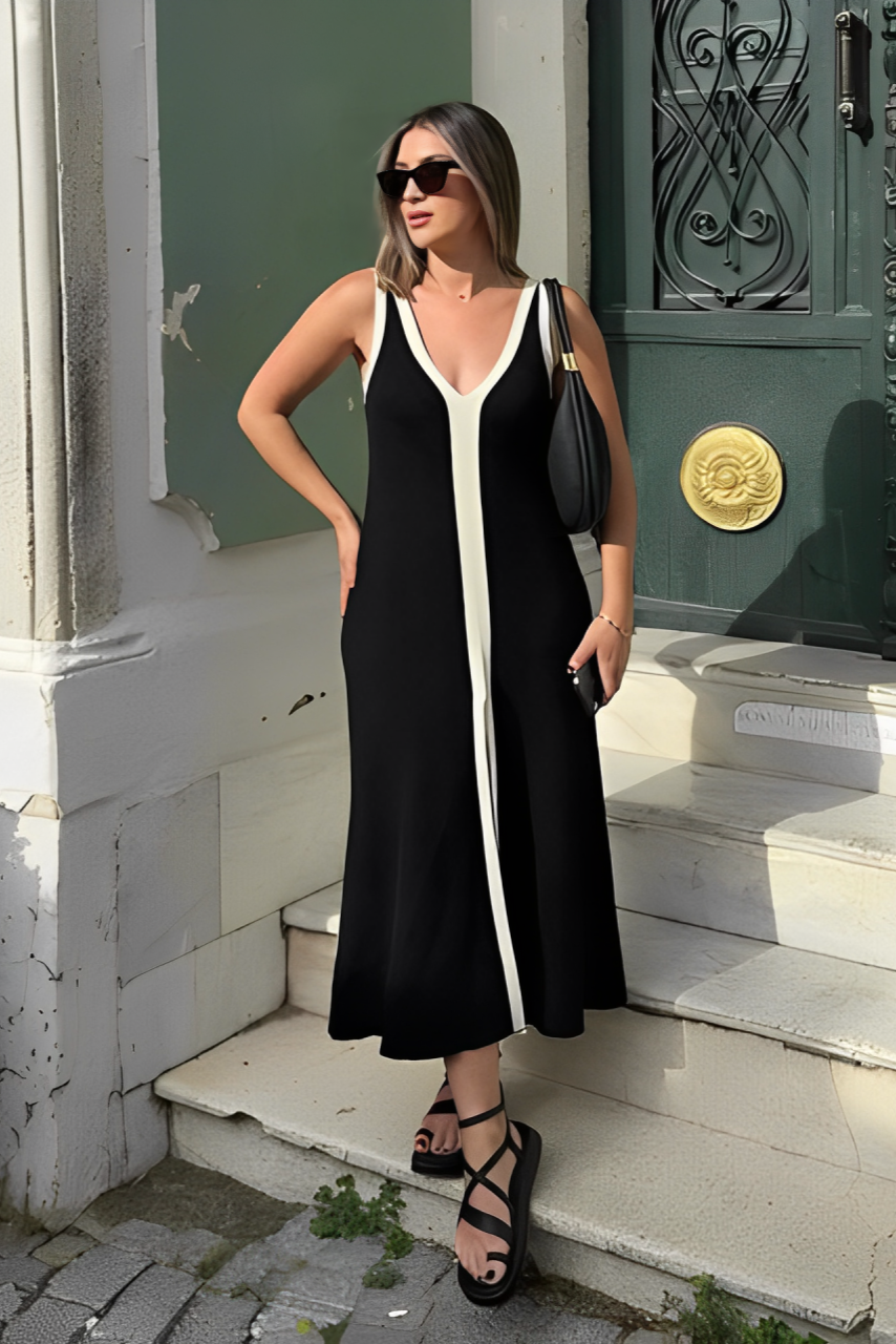 El vestido Gloria es la definición de la elegancia hecha sencillez. Con un escote en V que alarga la silueta y sin mangas para un look fresco y contemporáneo, este vestido es perfecto para las mujeres que buscan un estilo sofisticado sin esfuerzo. Su largo hasta el tobillo añade una dosis extra de glamour, mientras que el corte entallado realza tus curvas de forma elegante. Ideal para una gran variedad de ocasiones, desde eventos formales hasta reuniones informales, el vestido Aricia es una pieza esencial para el armario de la mujer moderna.